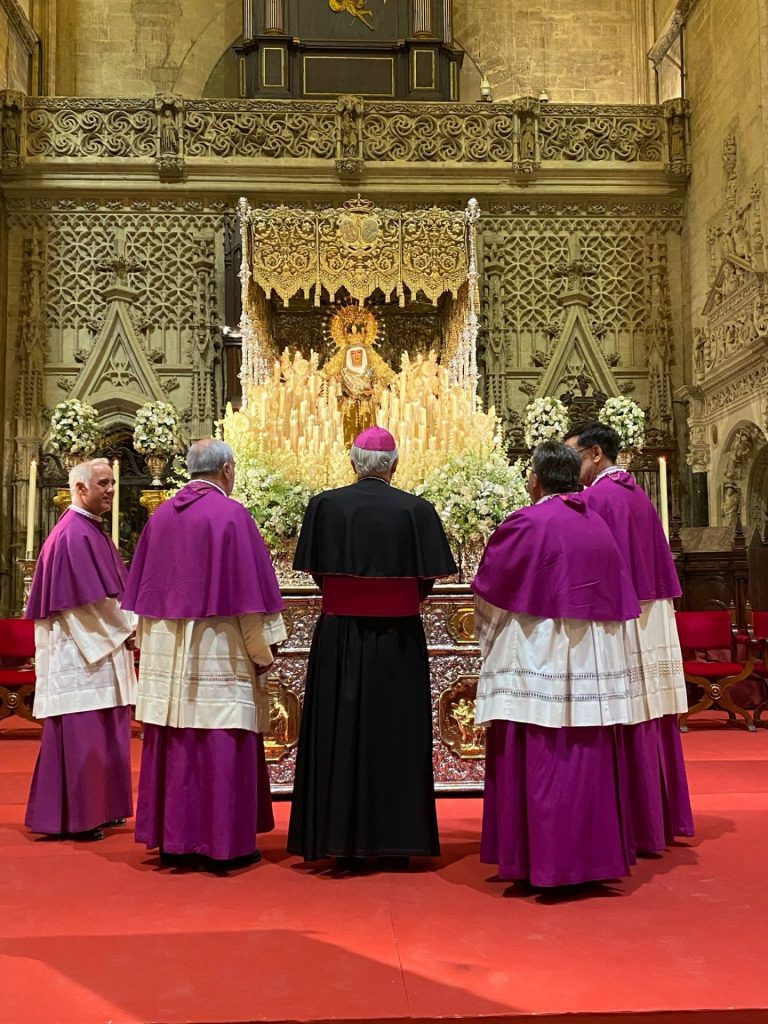 Allí Monseñor, don José Ángel Saiz nos dejó mensajes de aliento, Fe y Esperanza a las Hermandades como aquel en el que confirmaba “que la Archidiócesis de Sevilla no se puede comprender sin el latido profundo de sus hermandades y cofradías. Son cauces privilegiados de fe y de vida cristiana”.