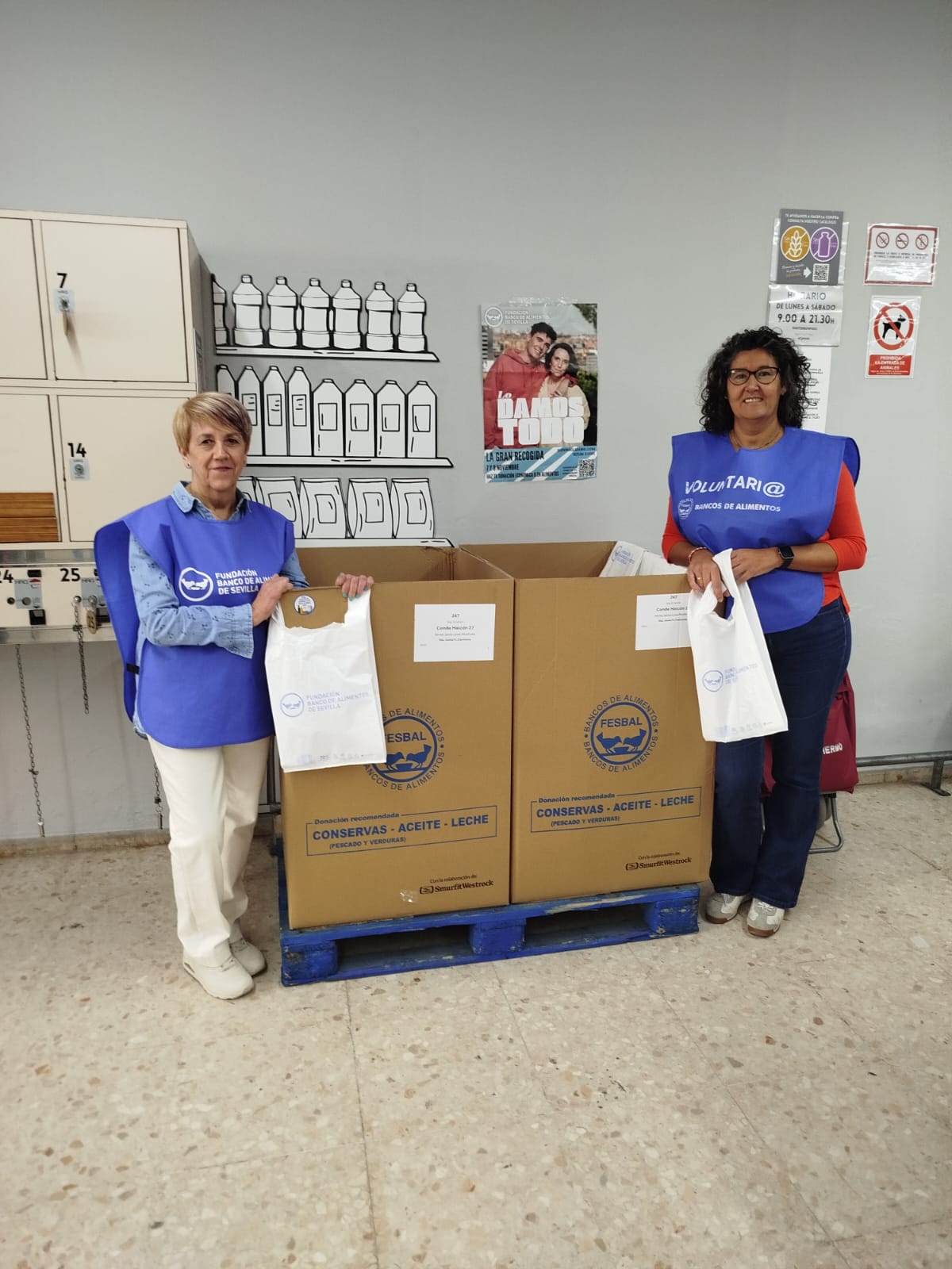Entre estos voluntarios se encontraban algunas integrantes de la Bolsa de Caridad de nuestra Hermandad que como viene siendo habitual, colabora en esta causa.