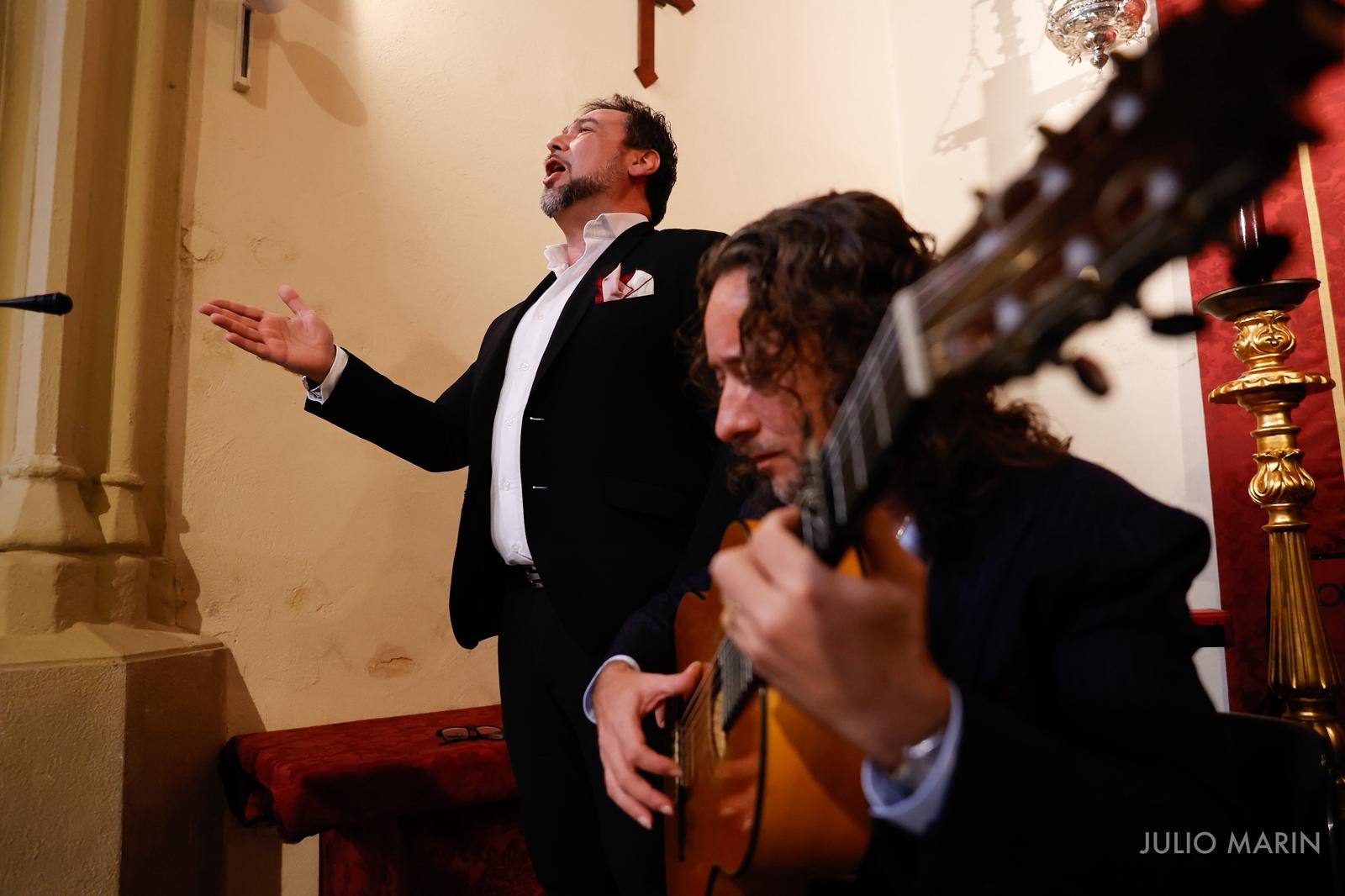 La eucaristía contó con los cantes hecho oración de la mano de Esperanza Fernández, que emocionó a los asistentes con el pellizco que le pone al «Gelem, Gelem» en el canto de entrada; José Valencia nos ofreció las Bienaventuranzas, el Santo por tientos y unos villancicos como Canto en la procesión de Salida; y Manuel Monje que en la Comunión nos regaló la Zambra del Ruego y como Canto final a la Virgen, la Plegaria «Madre de los Gitanos». Todos ellos acompañados por el toque flamenco de El Perla.