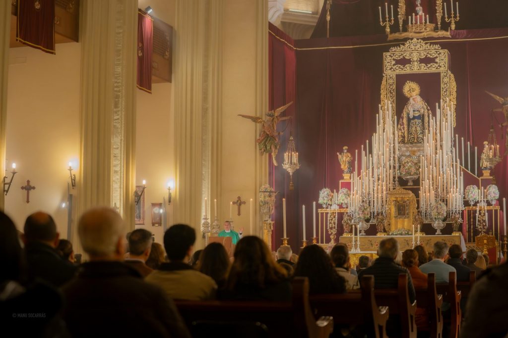 Este sábado 06 de febrero, tal y como ordenan nuestras Reglas, comenzaba el Solemne Triduo a María Santísima de las Angustias Coronada. A las 20:15 horas se iniciaba este culto con el rezo del Santo Rosario seguido del ejercicio del Triduo, para entorno a las 20:30 horas, celebrarse la Eucaristía, cuya Sagrada Cátedra ocupaba el Rvdo. Sr. D. Manuel Sánchez Sánchez, Miembro del Equipo Sacerdortal de la Blanca Paloma y Nuestra Señora de la Candelaria de Sevilla.