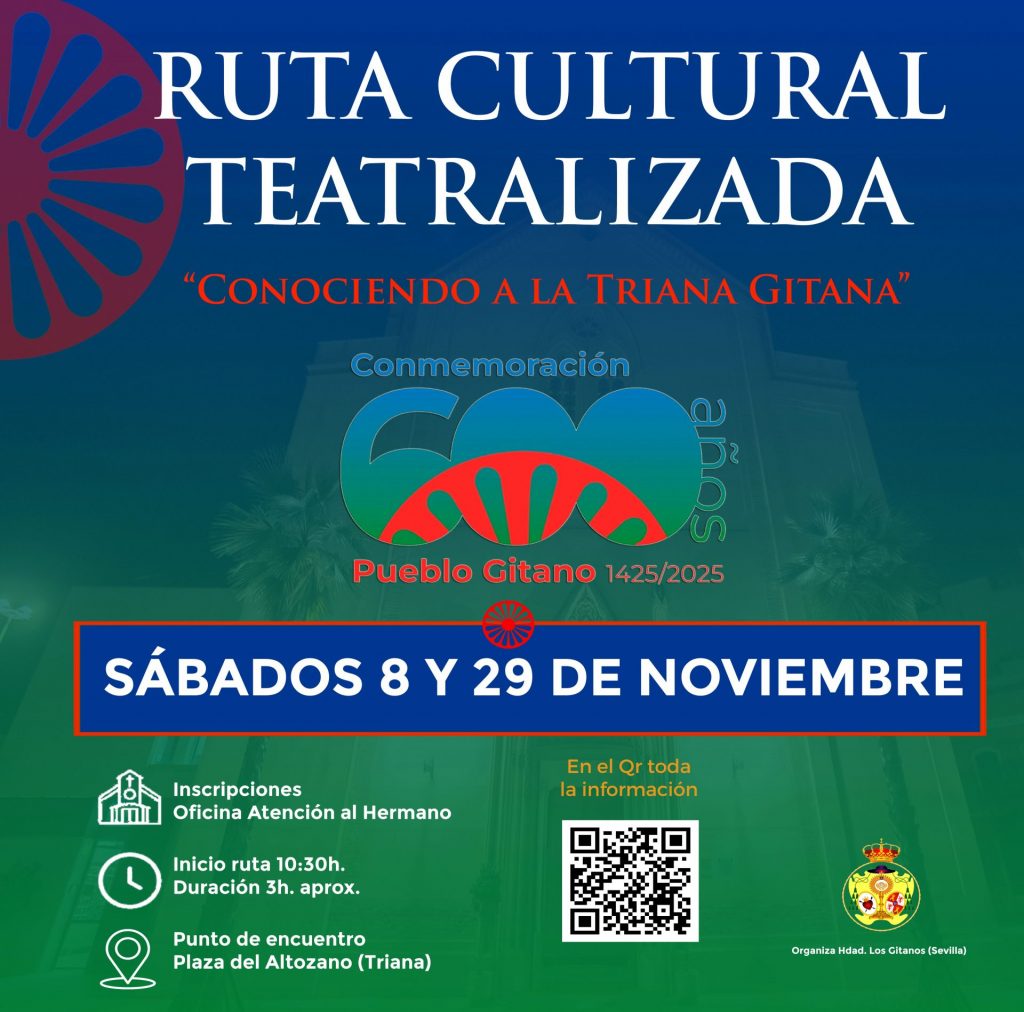 Otra de las actividades que conforman el programa conmemorativo de la Clausura del Año del Pueblo Gitano que va a llevar a cabo la Hermandad es la Ruta Cultural e Histórica Teatralizada titulada “Conociendo a la Triana Gitana”.