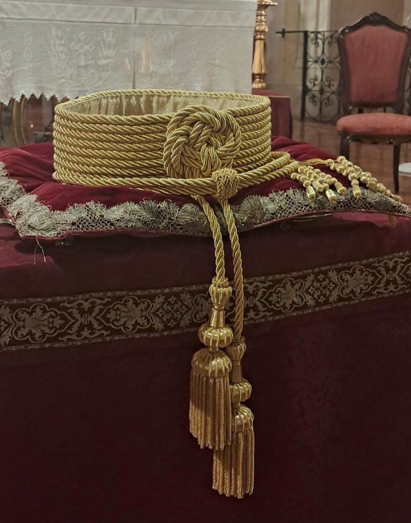 Un grupo de hermanos de la Hermandad, el pasado Viernes en nuestros Cultos semanales hicieron entrega de una donación que viene a engrandecer el ajuar del Señor de la Salud. Se trata de un cíngulo de oro compuesto de fajín de 8 vueltas de cordón calabrote oro con rosetón en forma de rombo.
