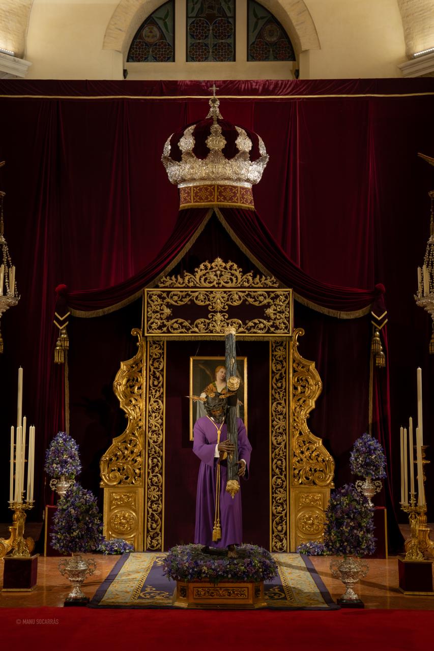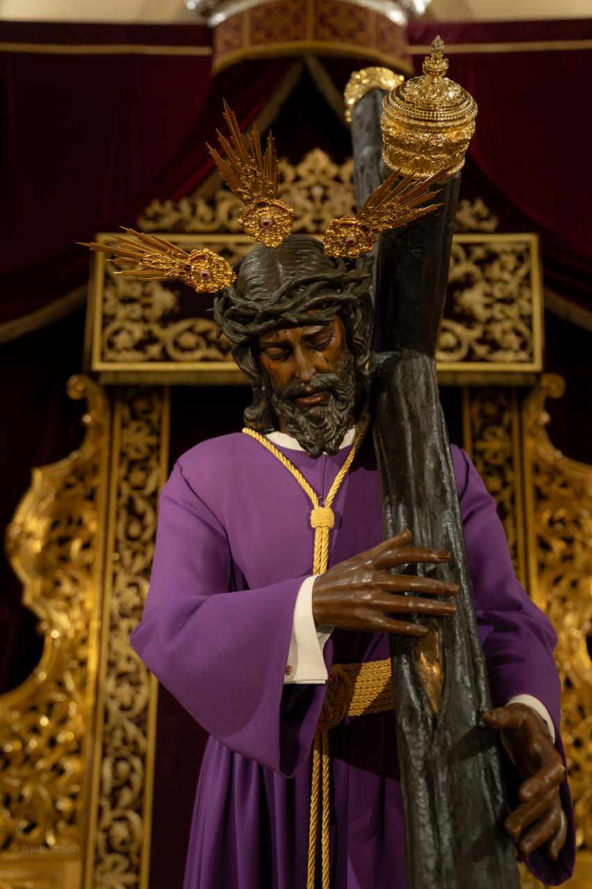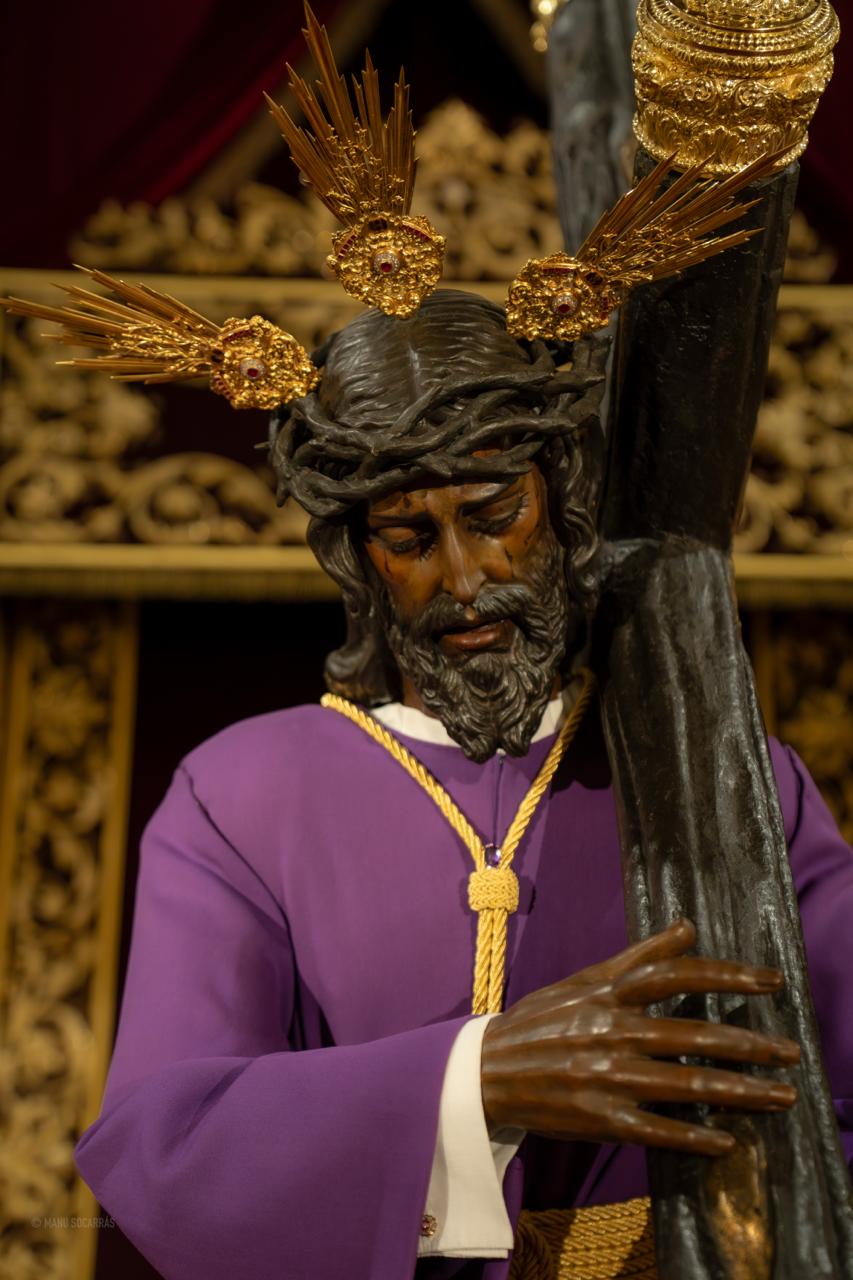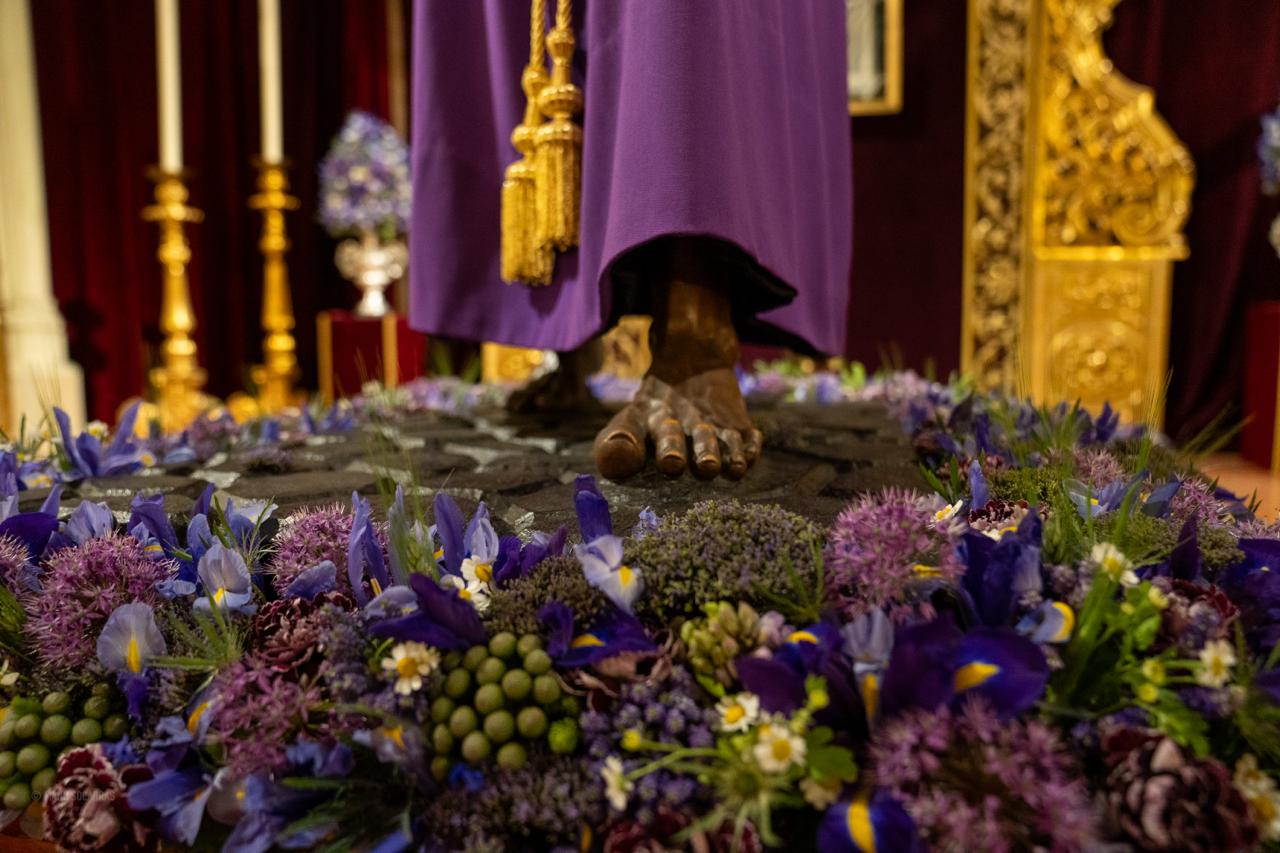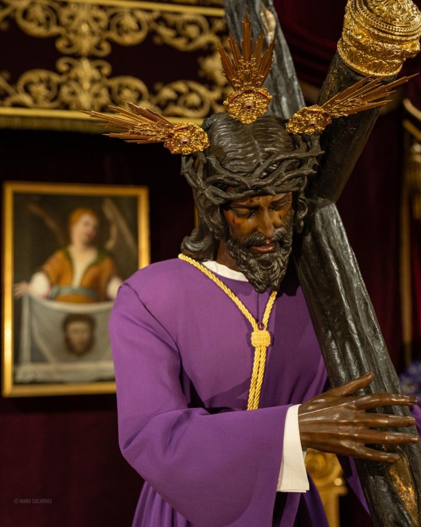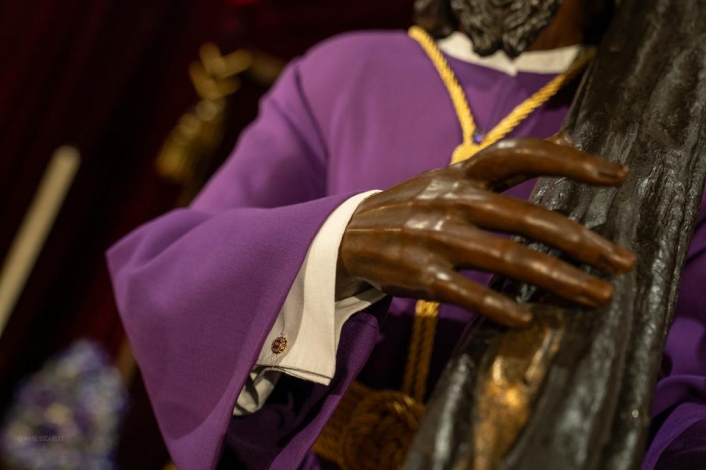 Para ello, ha sido ataviado con túnica de lana lila realizada por José Cerezal en 2011. Estrena unos magníficos gemelos de oro brillantes y rubíes donados por un Grupo de Hermanos. Porta sus potencias de oro obra de Manuel Seco Velasco realizadas en 1.967 y de cuya imposición fueron madrinas las Hermanas de la Cruz como recuerda un azulejo en el zaguán de su Convento.