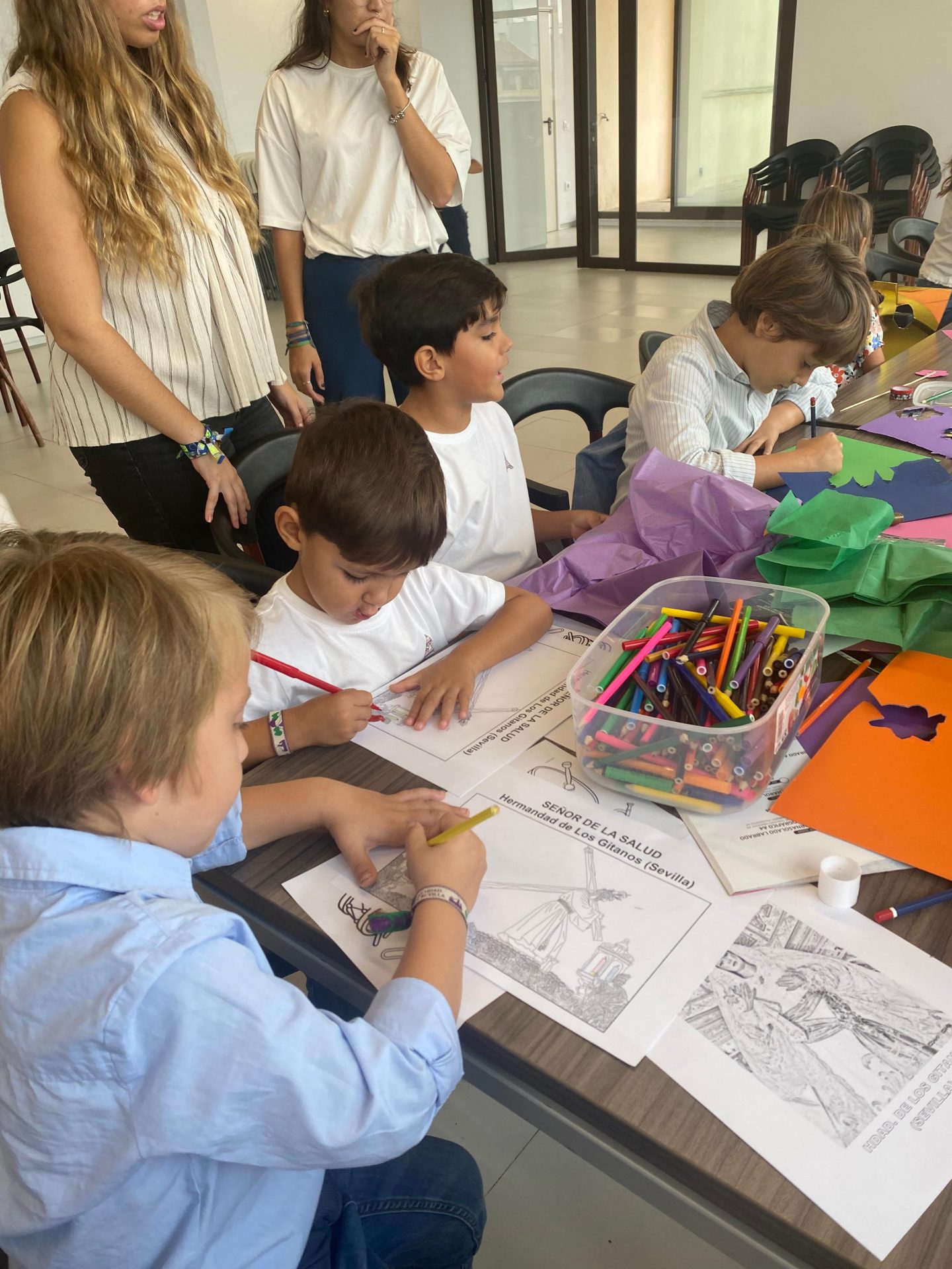 El pasado domingo, nuestra Casa Hermandad rebosaba de alegría con el taller-desayuno del Campamento de Verano. Se convocaron a participantes de este proyecto de Hermandad para realizar, en un taller las flores, las ofrendas a la Virgen de las Angustias para la eucaristía del próximo 29 de octubre día en el que conmemoramos su Coronación.